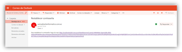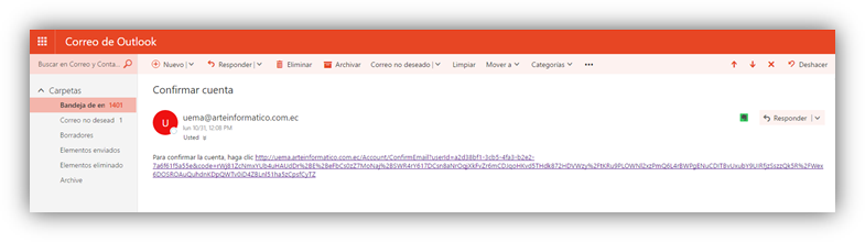 3) Un mail será enviado a su cuenta de correo electrónico, en su contenido se encuentra un enlace sobre el que deberá dar clic para continuar con el proceso