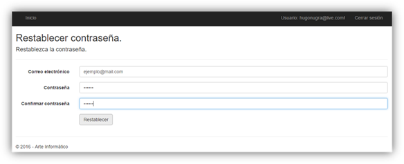 4) El enlace lo llavará a un formulario en el que deberá ingresar su correo electrónico y la nueva contraseña con la que podrá acceder al sistema.